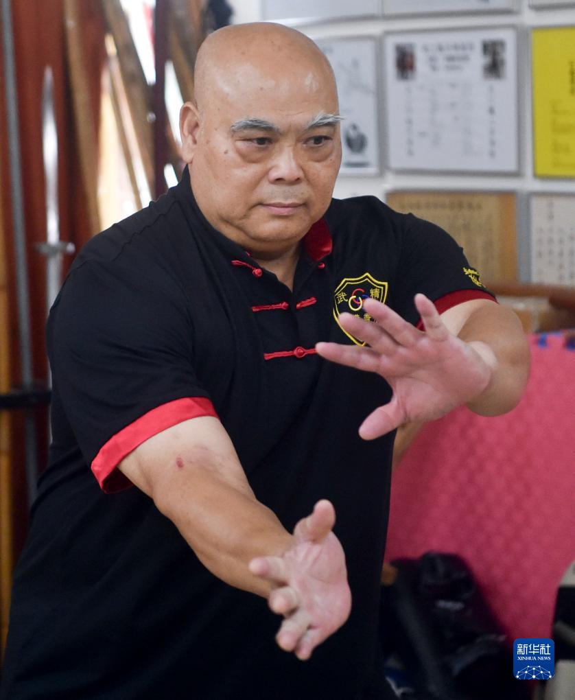 8月18日,黃耀球展示功夫(8月18日攝)。新華社記者 盧炳輝 攝