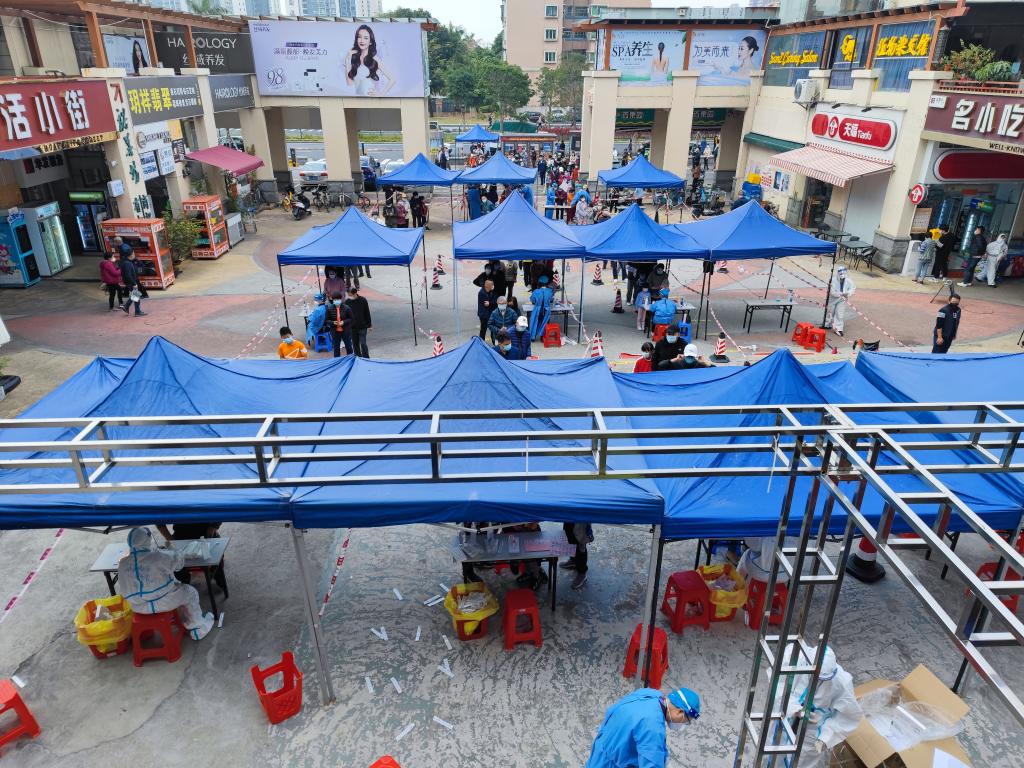 處于南屏管控區的華發(fā)新城商業(yè)街核酸集中檢測點(diǎn),現場(chǎng)秩序井然。(康振華攝)