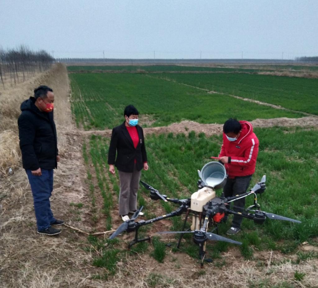 如何不耽誤農時(shí),成了村里的大事。在北賈村,由村集體出資,雇無(wú)人機免費為全村小麥統一噴灑農藥,統一田間管理。