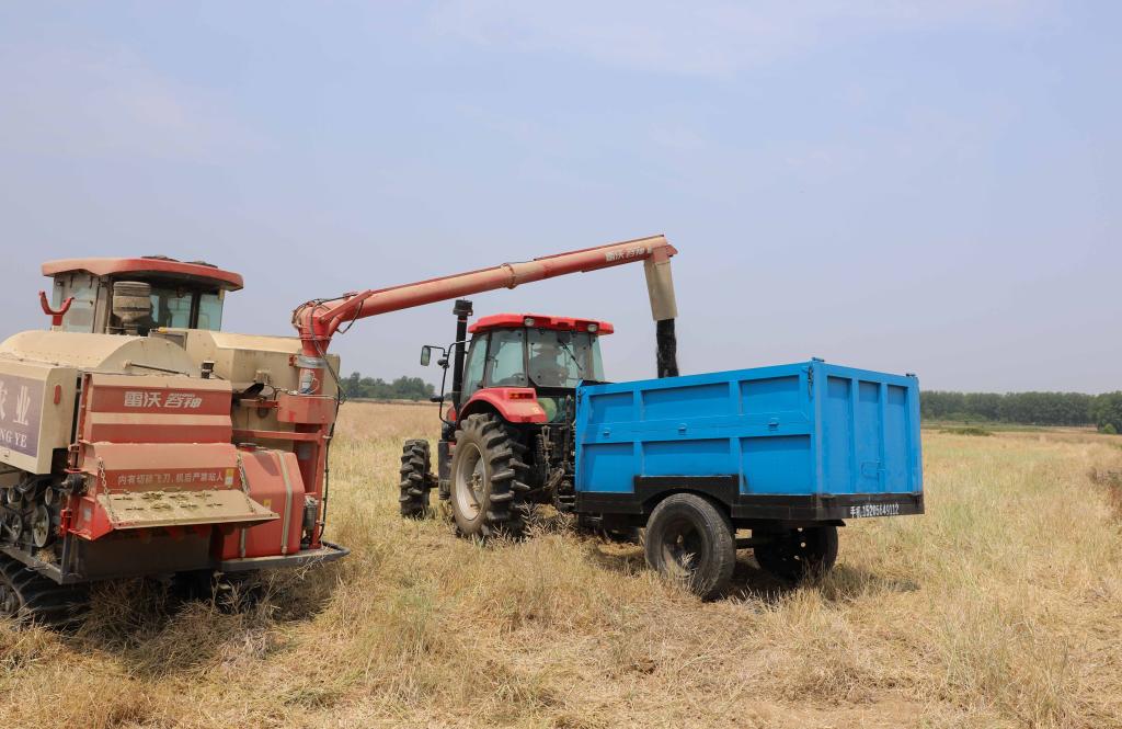 “今年我們種了1050畝油菜,用上了‘新’收割機,不到3天就收了三分之二?!辟Z莊村村委會(huì )委員韓磊告訴記者,今年賈莊村改進(jìn)了油菜收割機械,比傳統機械收割減損50%左右。