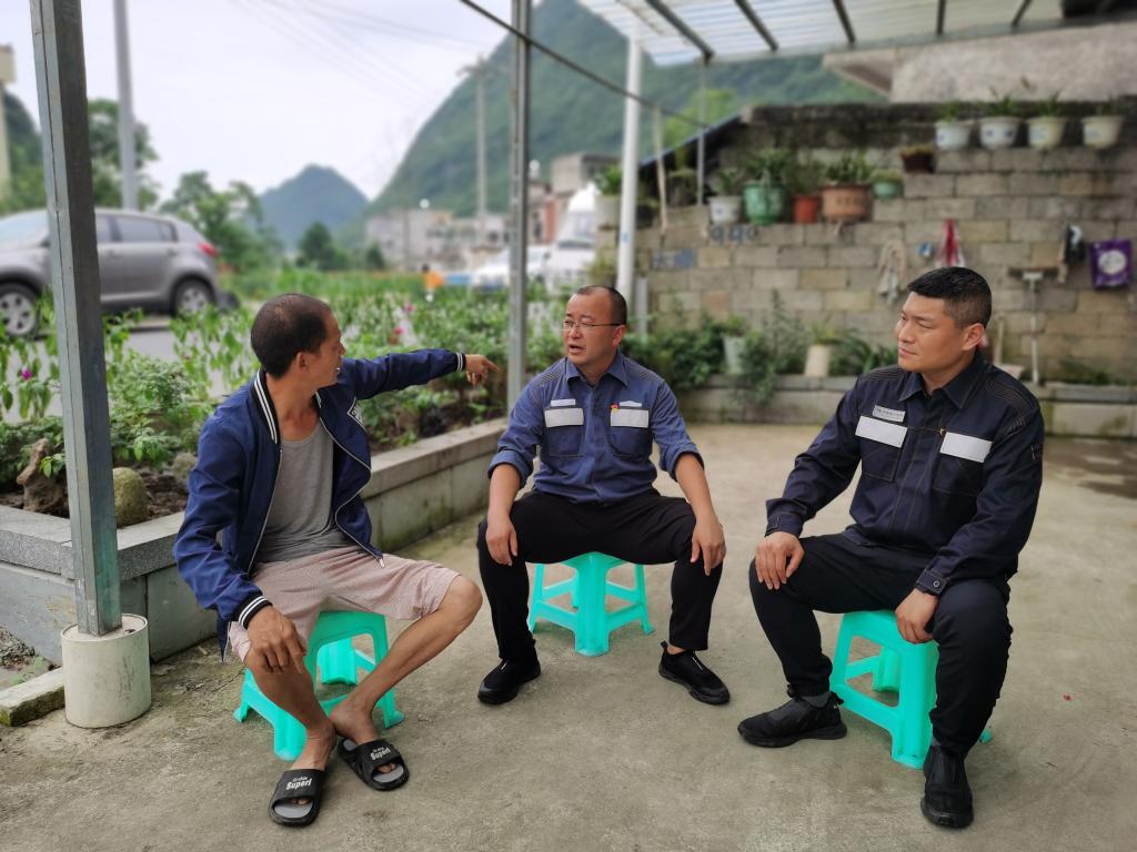 洛麥村駐村干部王維鐸(中)和卓峰(右)與村民交談。(受訪(fǎng)者供圖)