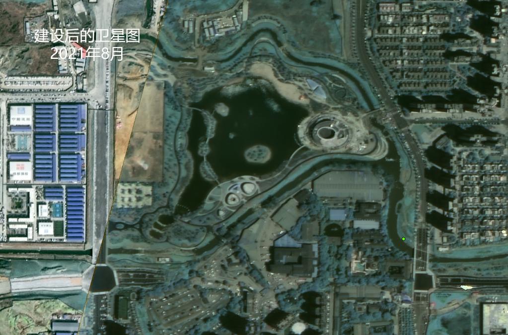作為沱江流域成都段治理模式的范例,九道堰河流域被確定為生態(tài)文明建設主題公園。上圖為公園建設之前的衛星圖和實(shí)拍圖,建設前,這里雜草叢生,河道淤積,有的河段成為臭水溝。下圖為公園建設后的衛星圖和實(shí)拍圖。