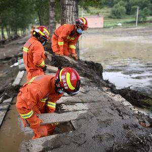 8月18日,青海海東市消防支隊隊員在西寧市大通回族土族自治縣青山鄉賀家莊村開(kāi)展救援工作。新華社記者 張宏祥 攝