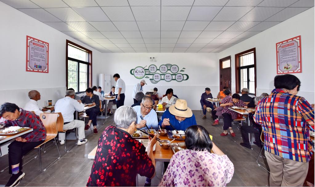 在金塔村老年人日間照料服務(wù)中心,老人們在餐廳用餐。(受訪(fǎng)者供圖)