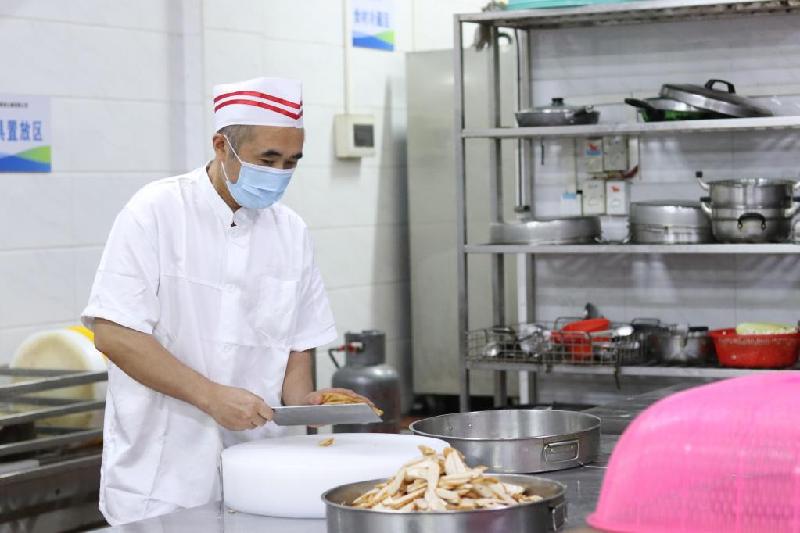 張容華在廣深珠高速公路有限公司的食堂切菜。受訪(fǎng)者供圖