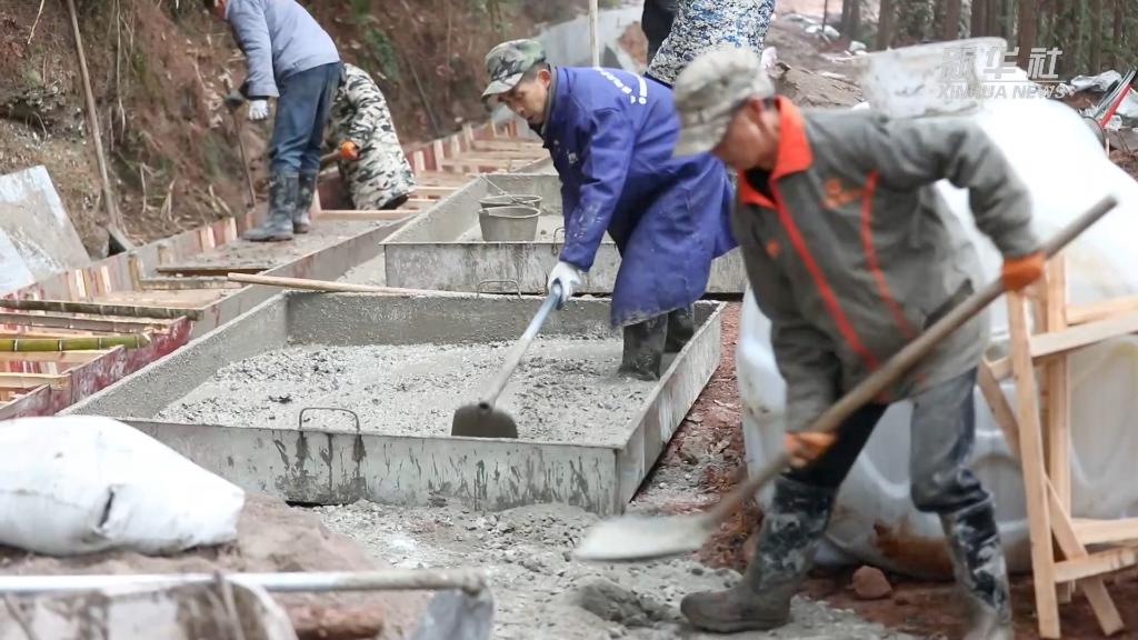 湖南省懷化市方石坪村,工人正在進(jìn)行排水灌溉渠道施工,通過(guò)高標準農田建設項目,今年將翻新完善方石坪村7600余米的灌溉渠道。