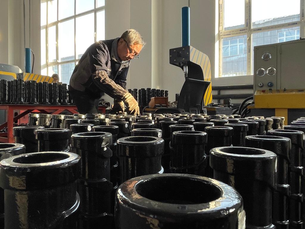 黑龍江省湯原縣振華機械制造有限公司生產(chǎn)車(chē)間內,工人在進(jìn)行作業(yè)。(新華社記者王鶴 攝)
