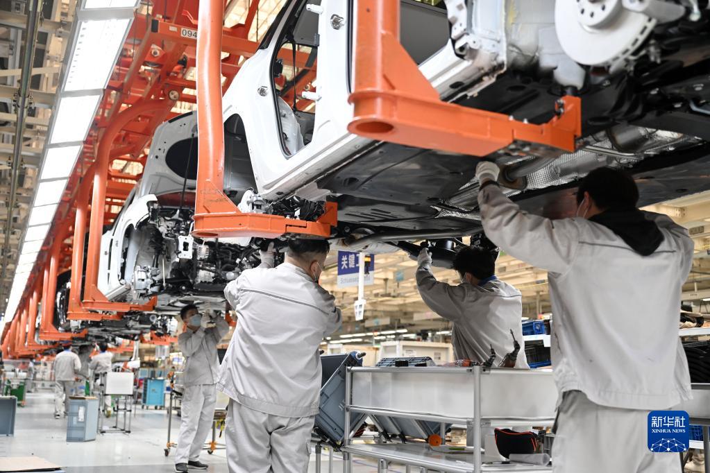 這是1月11日拍攝的位于天津的一汽-大眾天津分公司總裝車(chē)間生產(chǎn)線(xiàn)。新華社記者 趙子碩 攝