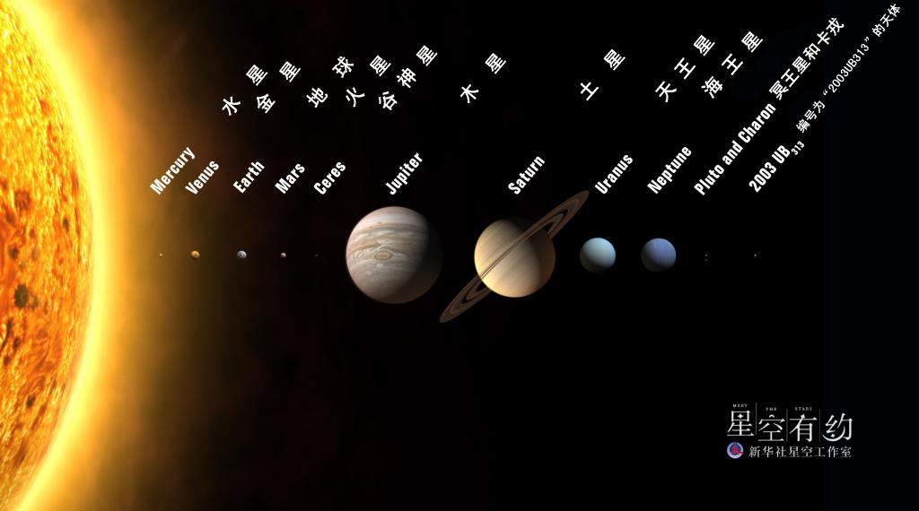 這張繪制圖片顯示了太陽(yáng)系的12顆天體(含谷神星)。新華社發(fā)