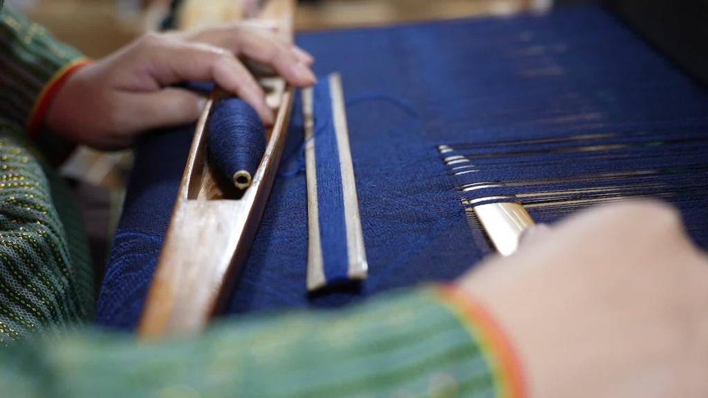 從小在雷山縣苗族村寨長(cháng)大的甘小芝,8歲開(kāi)始學(xué)習織錦,10歲就能自己完成種棉、紡線(xiàn)、排線(xiàn)、上機、刺繡等整套織錦流程。如今的她已是國家級非遺項目苗族織錦技藝的省級代表性傳承人。