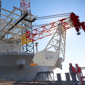 2022年12月20日,由江蘇啟東中遠海運海工為國外客戶(hù)訂制的N966自升式風(fēng)電安裝船交付啟航。新華社發(fā)(許叢軍攝)