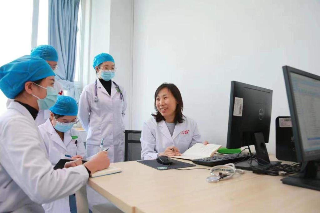 北京兒童醫院腎病科副主任周楠在保定院區與醫護人員一起交流探討。(受訪(fǎng)者供圖)
