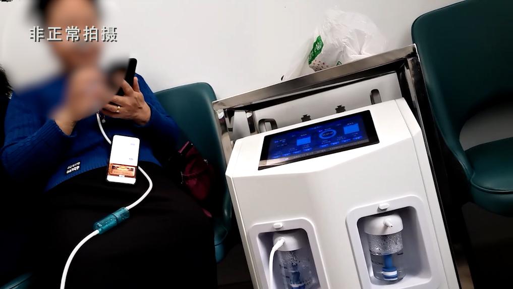 走進(jìn)太原市一家氫療館,10余臺制氫機在同時(shí)運轉,在店面的宣傳中,這一療法可以治療多種疾病。兩排沙發(fā)上坐著(zhù)20多位老人,鼻子上插著(zhù)氫氣管正在吸氫。有的老人說(shuō),他們每天吸4個(gè)小時(shí),感覺(jué)很舒服。有的老人正用氫氣眼鏡熏眼睛。