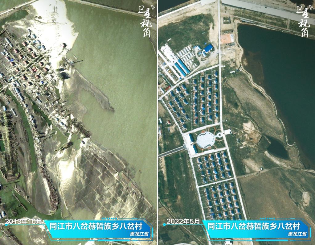 ↑2022年與2013年相比,黑龍江省同江市八岔赫哲族鄉八岔村村容村貌發(fā)生明顯改善。