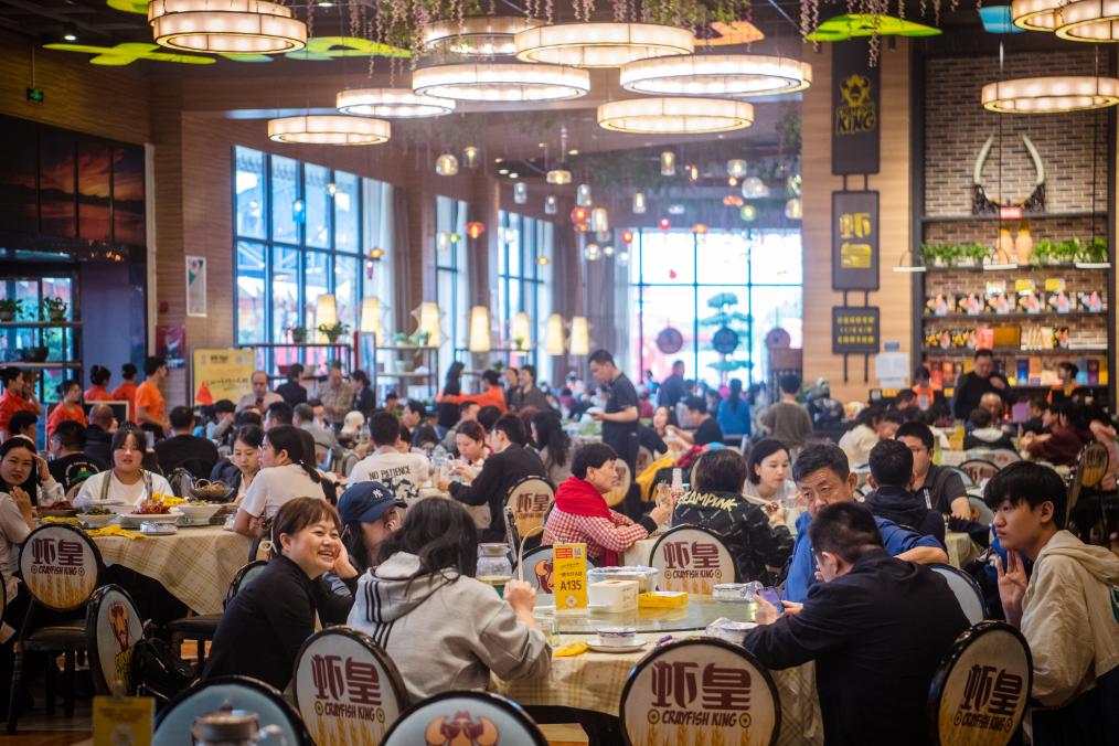 10月3日,在湖北潛江的一家飯店,游客前來(lái)品嘗小龍蝦。新華社記者伍志尊 攝