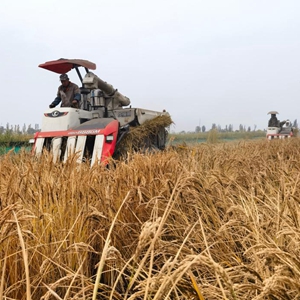 “這批收割機都是這兩年新?lián)Q的,稻穗高矮不齊也能收得很干凈,稻粒與稻稈互不摻雜?!?順著(zhù)程風(fēng)偉手指的方向記者看到,收割機駛過(guò),稻粒進(jìn)倉,稻稈則被割下沿著(zhù)機械行駛路徑整齊地鋪在地上,很少有稻?;祀s其間。