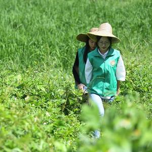 增城區一處農田,種糧大戶(hù)沈燕芬(前)查看禾苗長(cháng)勢。新華社記者鄧華 攝