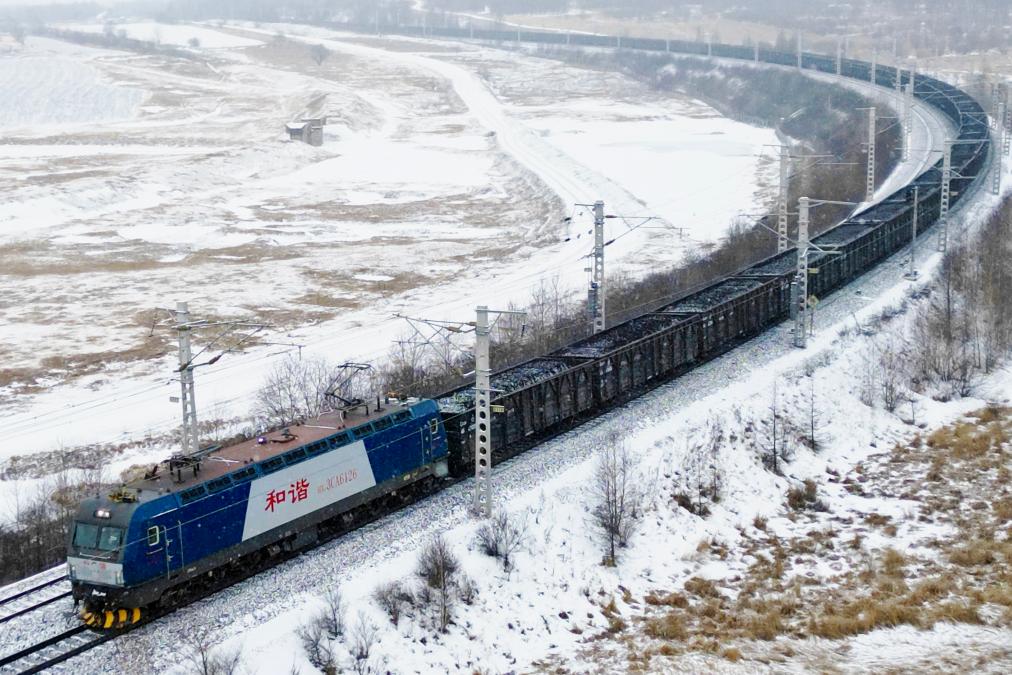 運輸物資的火車(chē)在寒風(fēng)中呼嘯而過(guò)。(中國鐵路哈爾濱局集團有限公司供圖)