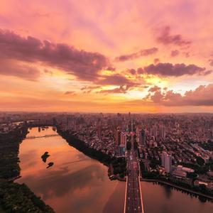 9月5日,陣雨過(guò)后,美麗晚霞映照南寧上空(無(wú)人機照片)。