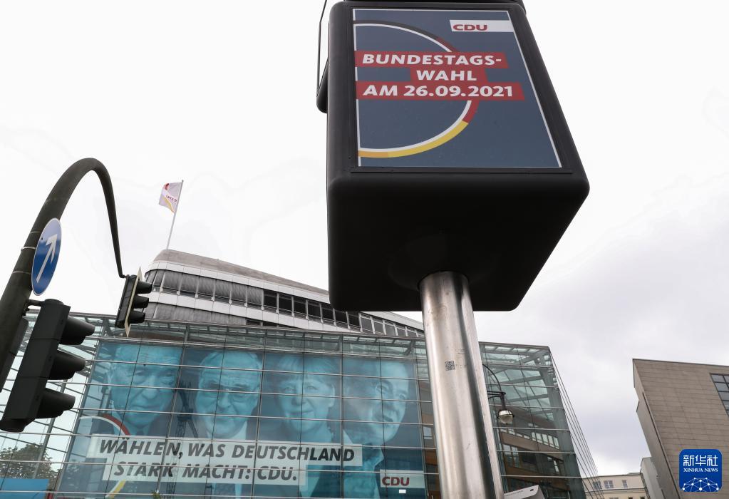 這是9月25日在德國首都柏林的德國基督教民主聯(lián)盟(基民盟)總部前拍攝的德國聯(lián)邦議院選舉宣傳廣告。