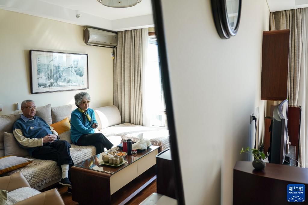 10月12日,在位于河北燕郊的燕達金色年華健康養護中心居家式養老公寓里,呂偉業(yè)(左)和李戰平在看電視。