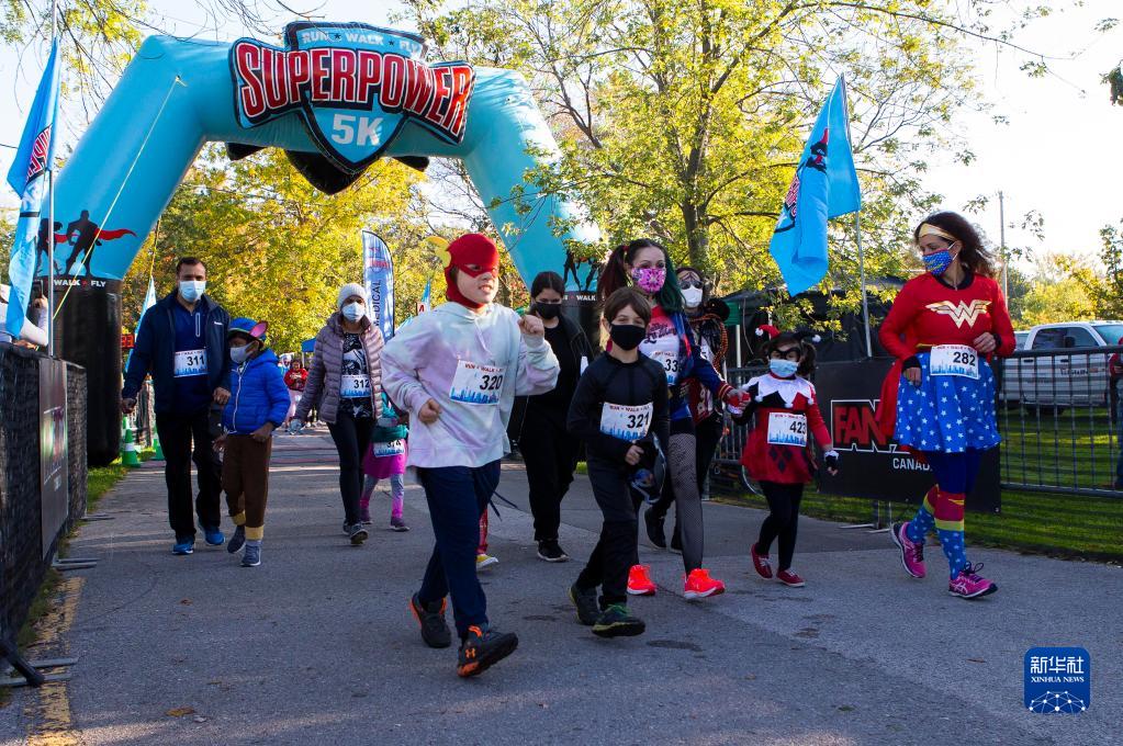 10月24日,穿著(zhù)動(dòng)漫服裝的人們在加拿大多倫多參加“變裝”5公里長(cháng)跑。