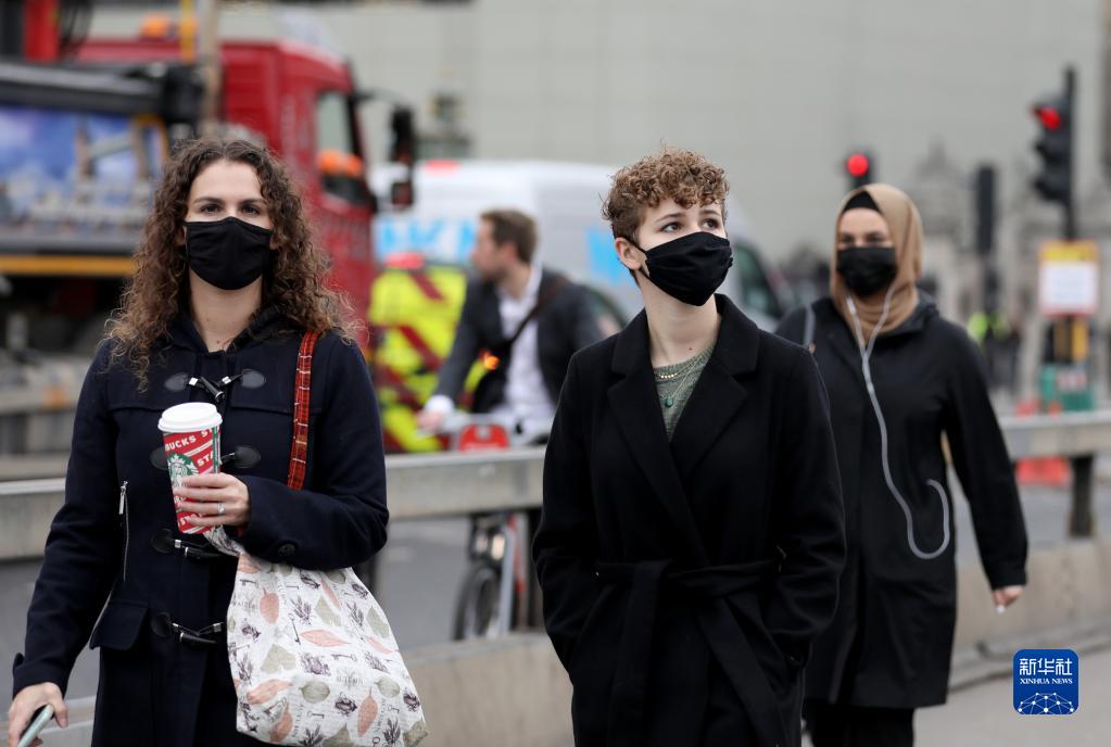 11月24日,人們在英國倫敦佩戴口罩出行。
