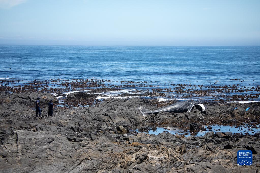 12月9日,在南非開(kāi)普敦,警察站在海岸邊的座頭鯨尸體附近。
