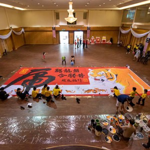 為迎接農歷虎年的到來(lái),文冬當地一家華人團體邀請畫(huà)家和學(xué)生一起創(chuàng )作了一幅11.5米長(cháng)、4.5米寬的老虎年畫(huà)。新華社發(fā)(張紋綜攝)