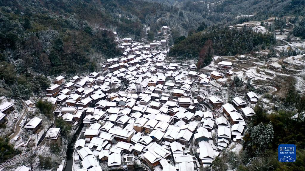 12月26日在貴州省榕江縣栽麻鎮拍攝的雪景(無(wú)人機照片)。