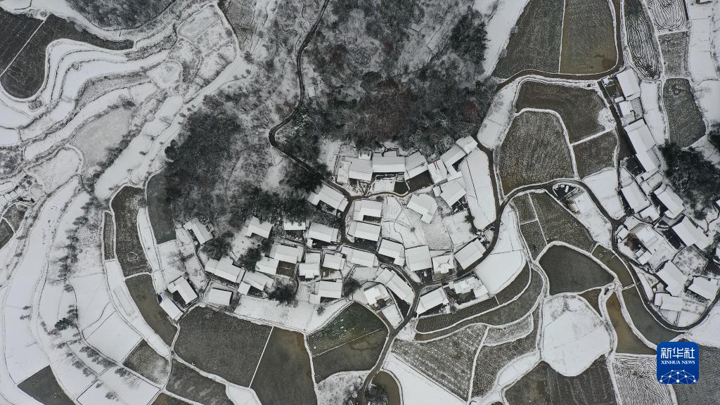 12月28日在湖南省花垣縣花垣鎮邊城村拍攝的雪景(無(wú)人機照片)。