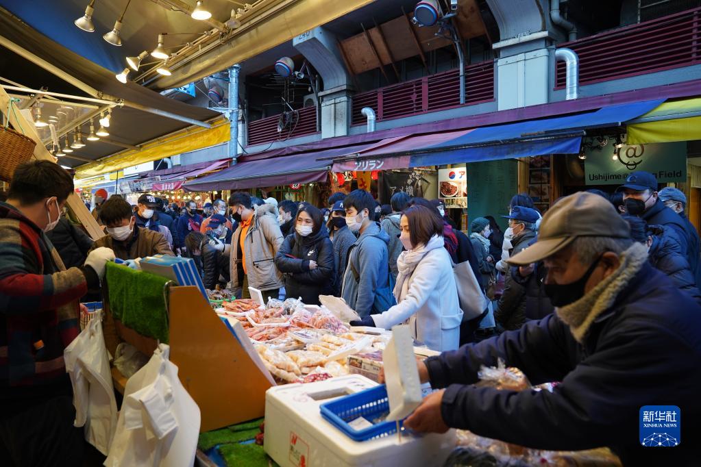 12月28日,人們在日本東京阿美橫町購買(mǎi)促銷(xiāo)商品。