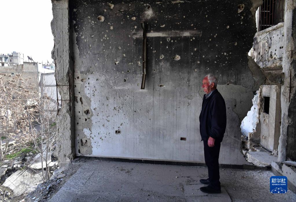 2021年3月11日,在敘利亞中部城市霍姆斯,70多歲的老人納伊姆·路易斯站在被戰火破壞的家中。由于戰爭,他曾經(jīng)美好的家只剩下斷壁殘垣。