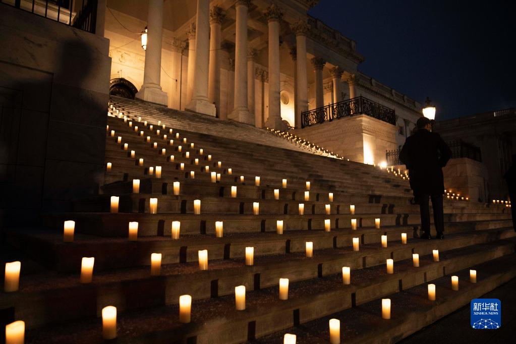 1月6日,美國首都華盛頓國會(huì )大廈外擺放蠟燭紀念國會(huì )山騷亂事件一周年。