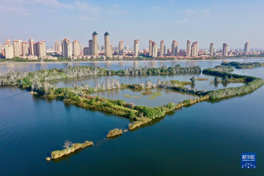 廈門(mén)市集美區城市濕地景觀(guān)(2021年12月8日攝,無(wú)人機照片)。