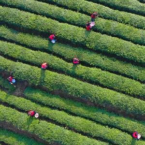 2月24日, 在浙江省湖州市德清縣武康街道對河口村一處茶園,人們搶抓農時(shí)為茶樹(shù)施肥(無(wú)人機照片)。