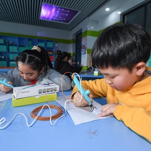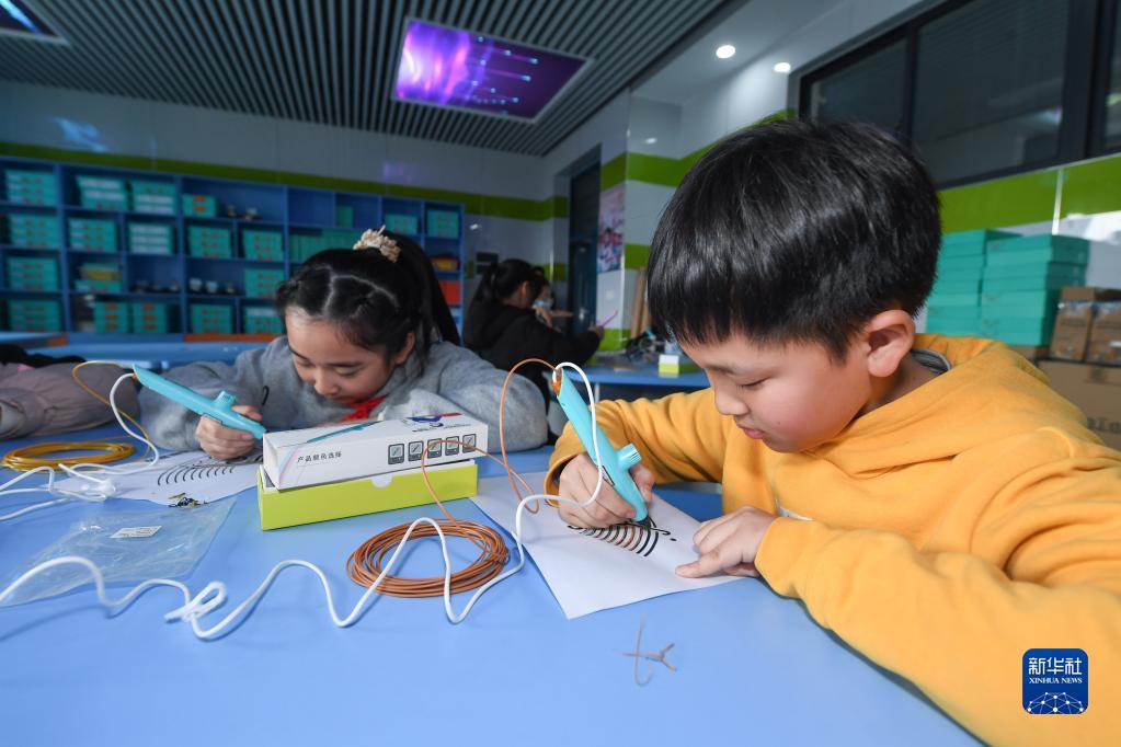 3月1日,城北小學(xué)學(xué)生學(xué)習用3D打印筆繪制立體圖案。