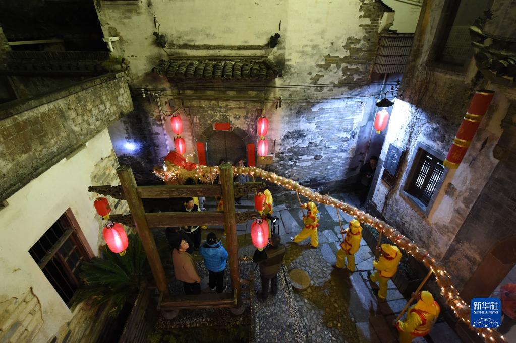 “舞草龍”是安徽省黃山市徽州區蜀源村特色民俗。在農歷二月二“龍抬頭”來(lái)臨之際,當地村民用稻草編織,輔以毛竹支架,制作長(cháng)達10余米的草龍,龍身掛滿(mǎn)燈帶,在古村中巡游,祈求五谷豐登、風(fēng)調雨順。