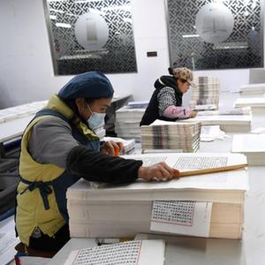 3月3日,工人在涇縣丁家橋鎮一家宣紙企業(yè)內制作宣紙線(xiàn)裝書(shū)。