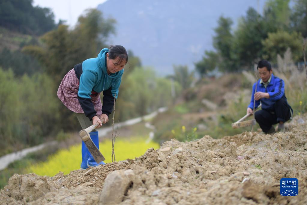 3月9日,村民在貴州省黔南布依族苗族自治州羅甸縣沫陽(yáng)鎮大井村種樹(shù)。