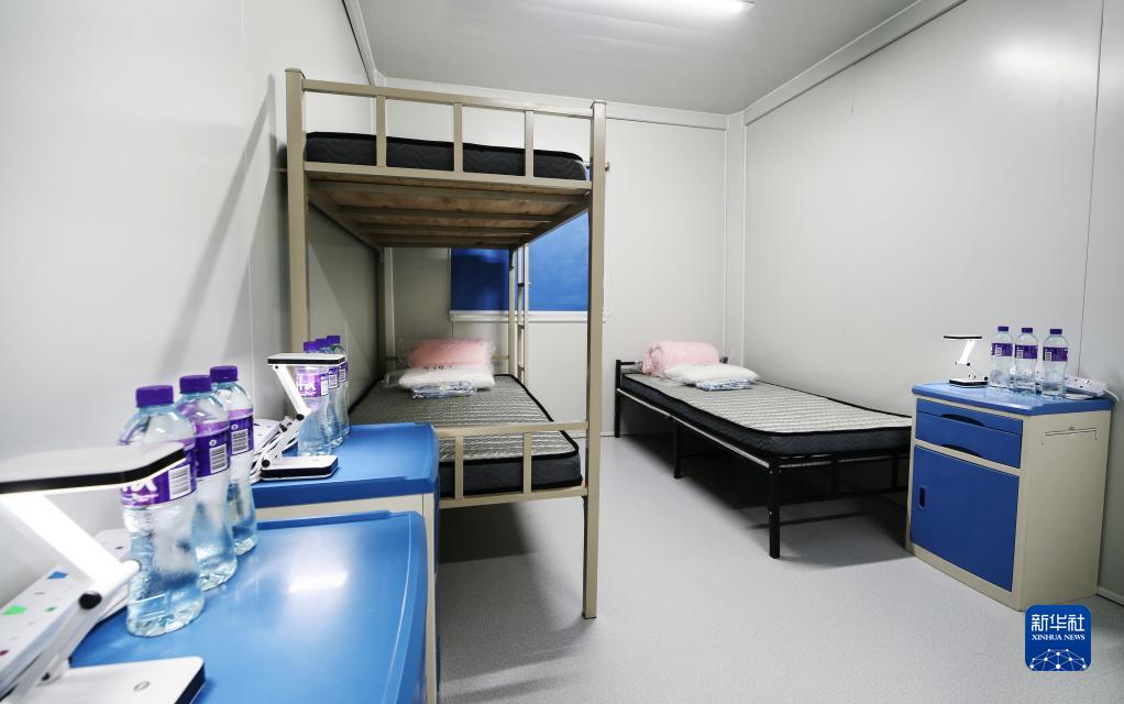 這是3月8日拍攝的香港新田方艙醫院隔離房間。