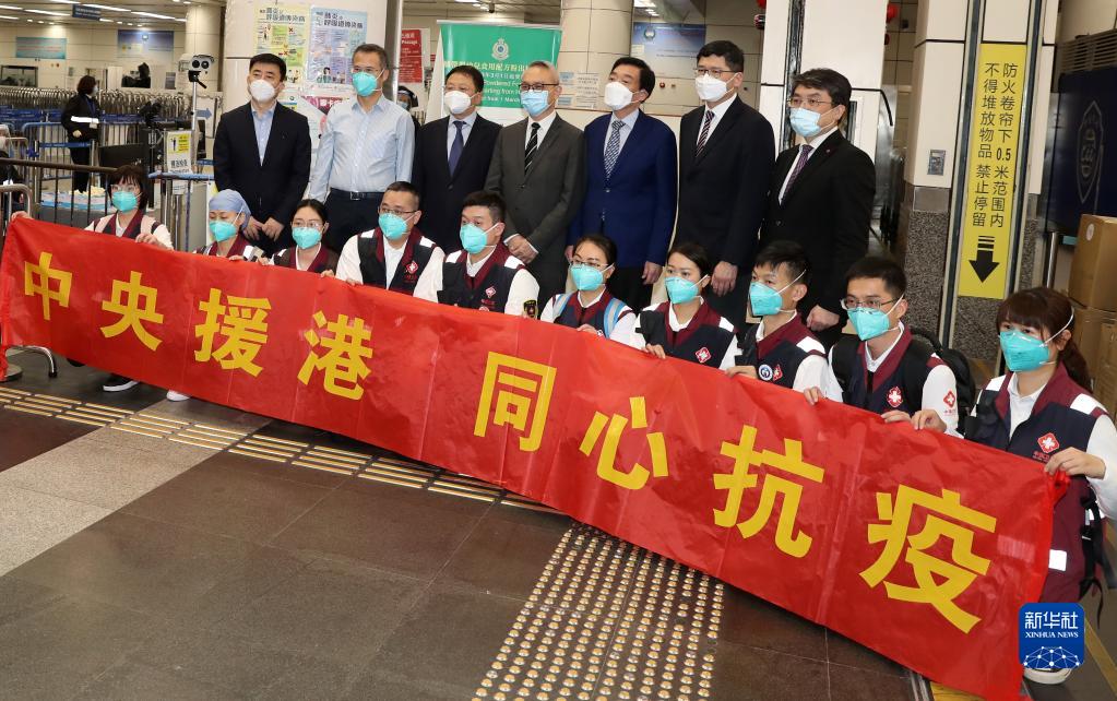 3月14日,香港有關(guān)負責人到深圳灣口岸迎接醫療隊的到來(lái)。