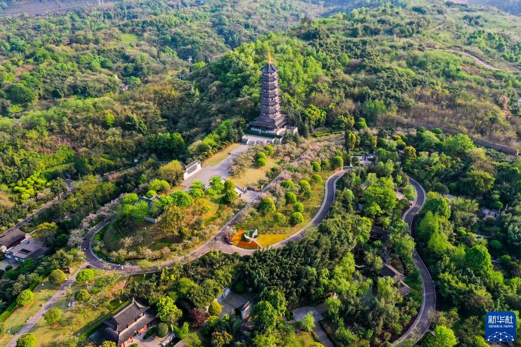 這是3月19日拍攝的重慶園博園景色(無(wú)人機照片)。