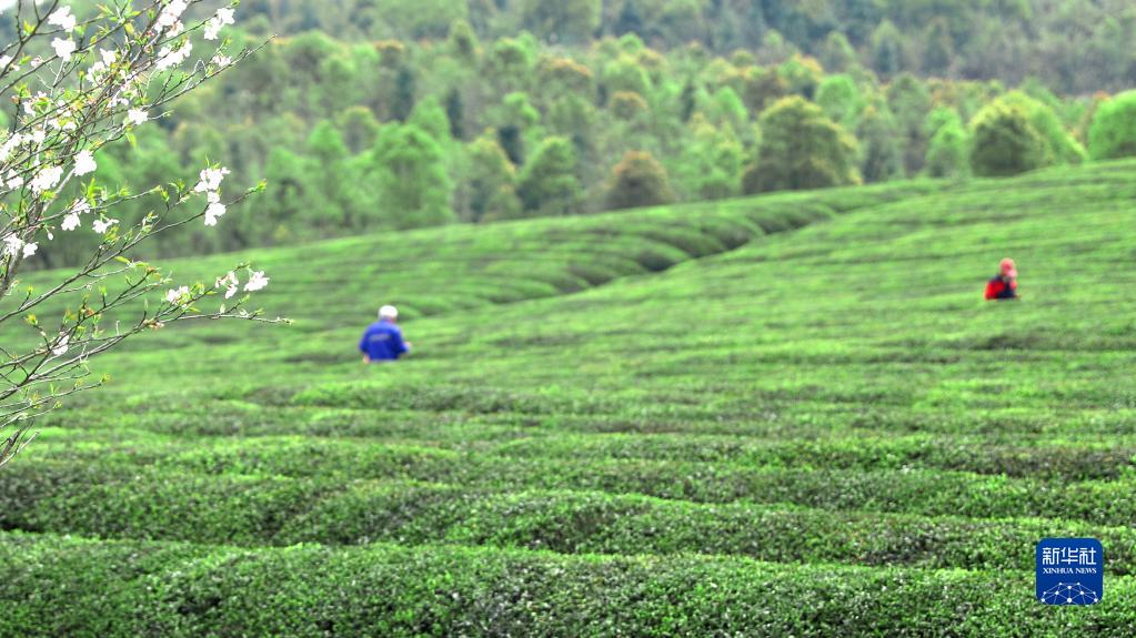 3月24日,在江西省宜春市上高縣新界埠鎮一茶場(chǎng),村民采摘明前茶。