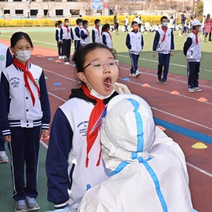 當日,山東青島部分學(xué)校組織師生進(jìn)行核酸采樣工作,為恢復線(xiàn)下教學(xué)做準備。