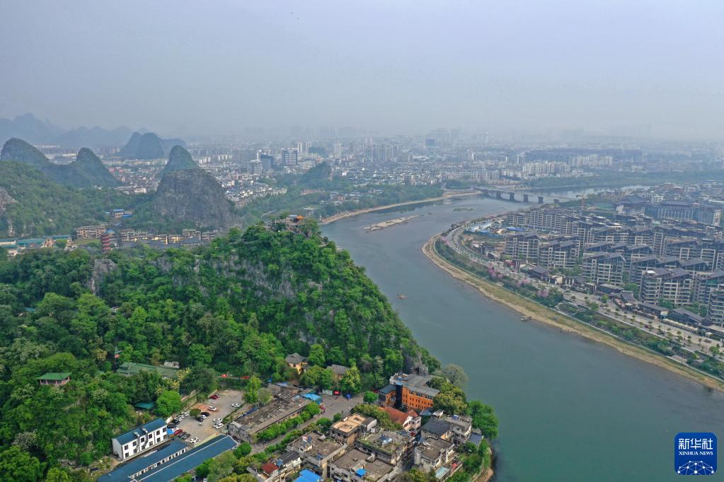 春意日濃,廣西桂林市城區山清水碧,草木蔥蘢,一派宜人景色。
