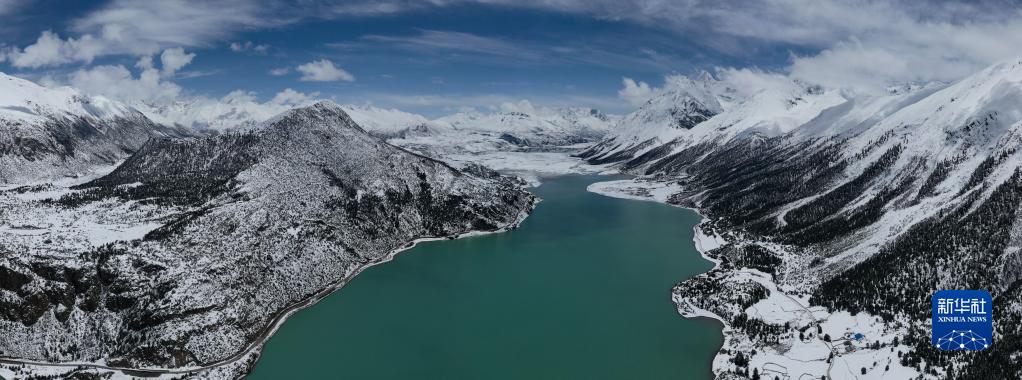這是無(wú)人機拍攝的然烏湖(4月18日攝)。