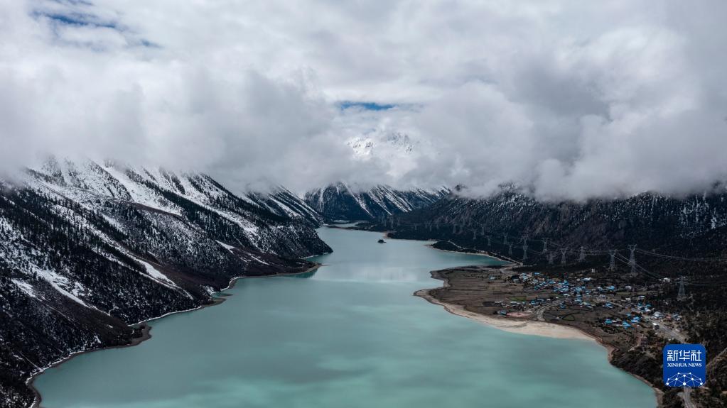 這是無(wú)人機拍攝的然烏湖(4月24日攝)。