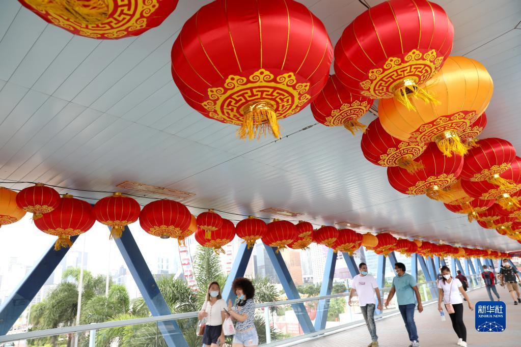 香港中環(huán)海濱長(cháng)廊紅燈籠高掛(6月19日攝)。