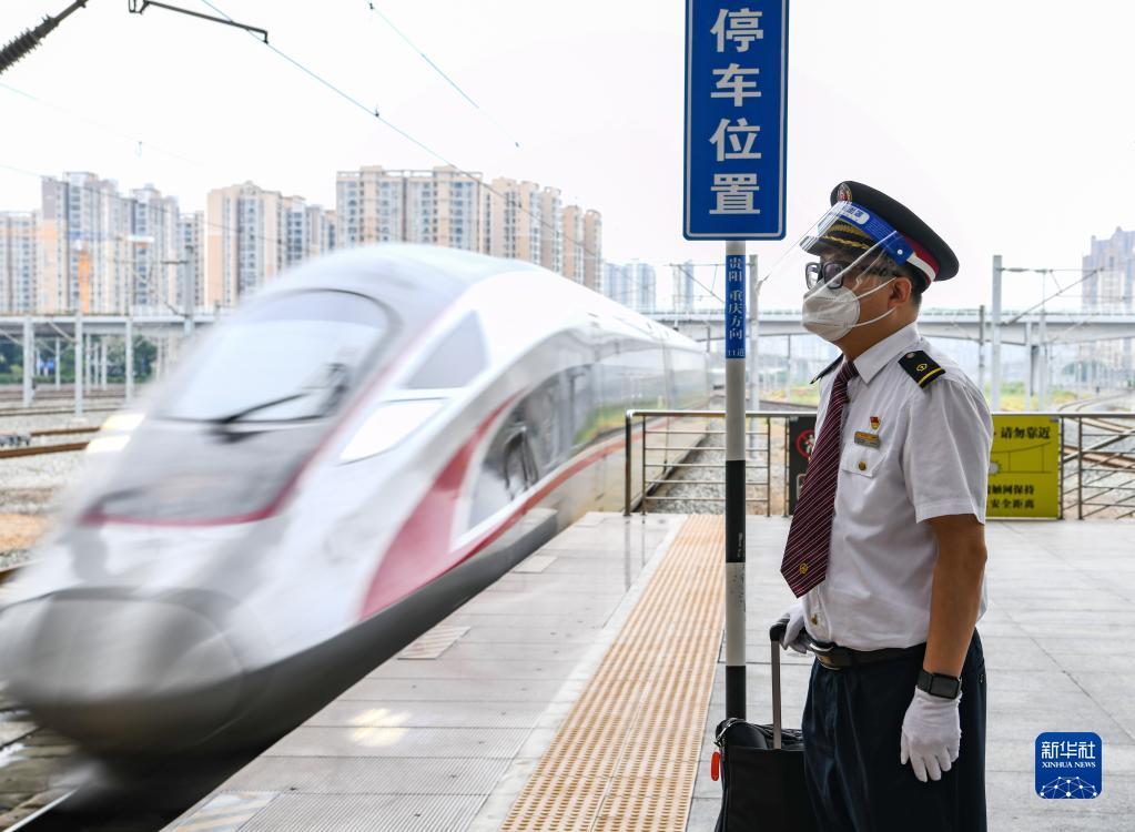 2020年12月24日,司機李治剛按響風(fēng)笛,駕駛G8608次復興號動(dòng)車(chē)組,由重慶沙坪壩站開(kāi)往成都東站。時(shí)速350公里的復興號動(dòng)車(chē)組,讓兩地間的高鐵通達時(shí)間縮短至62分鐘。
